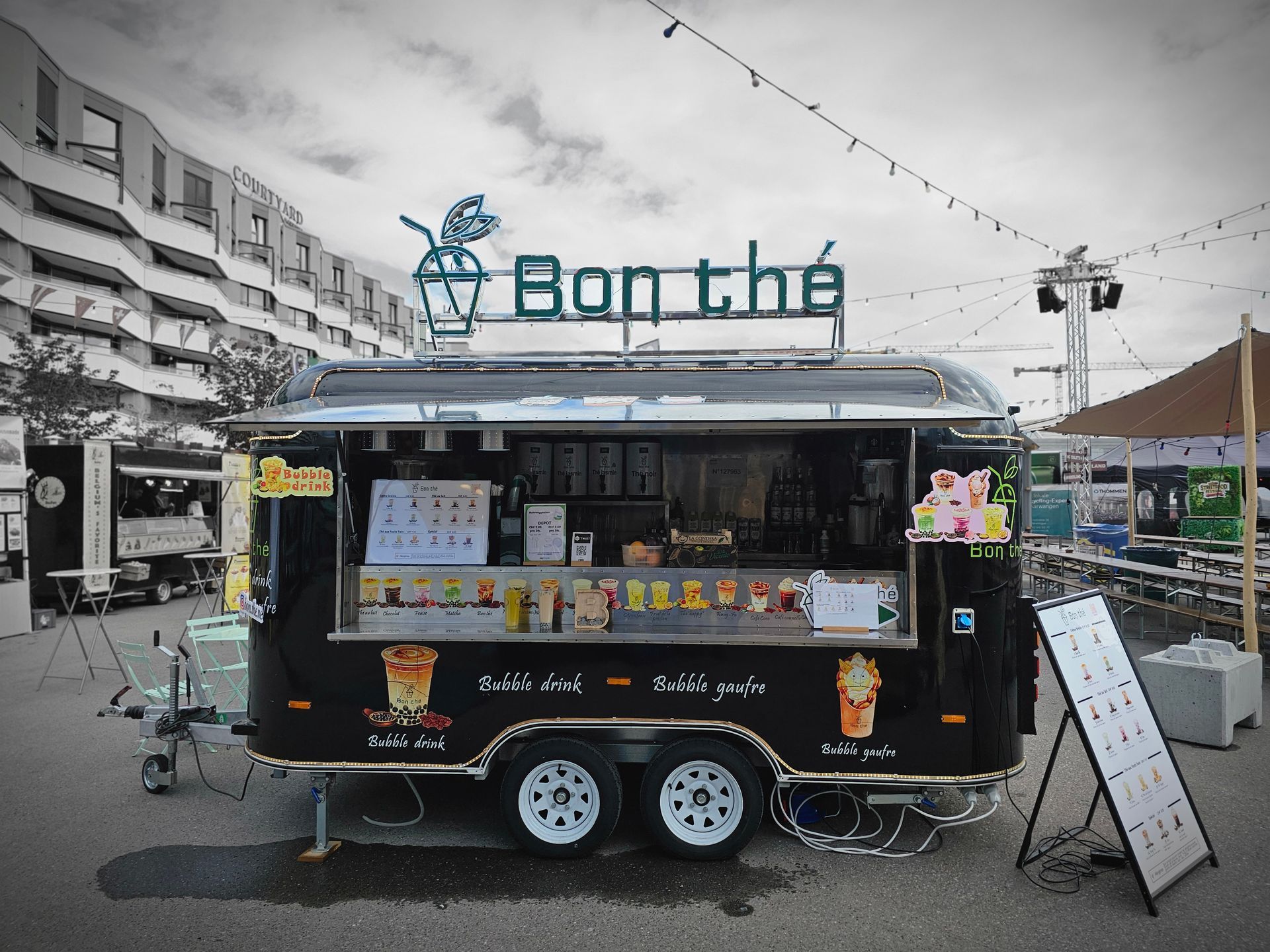 Bon Thé, une entreprise établie à Neuchâtel, se spécialise dans la création de boissons sophistiquées à base de Tapioca, plus communément connues sous le nom de «bubble tea». Notre innovation réside dans notre «drink-trailer» qui se déplace au gré de vos besoins, pour vous offrir une expérience inédite où que vous soyez.