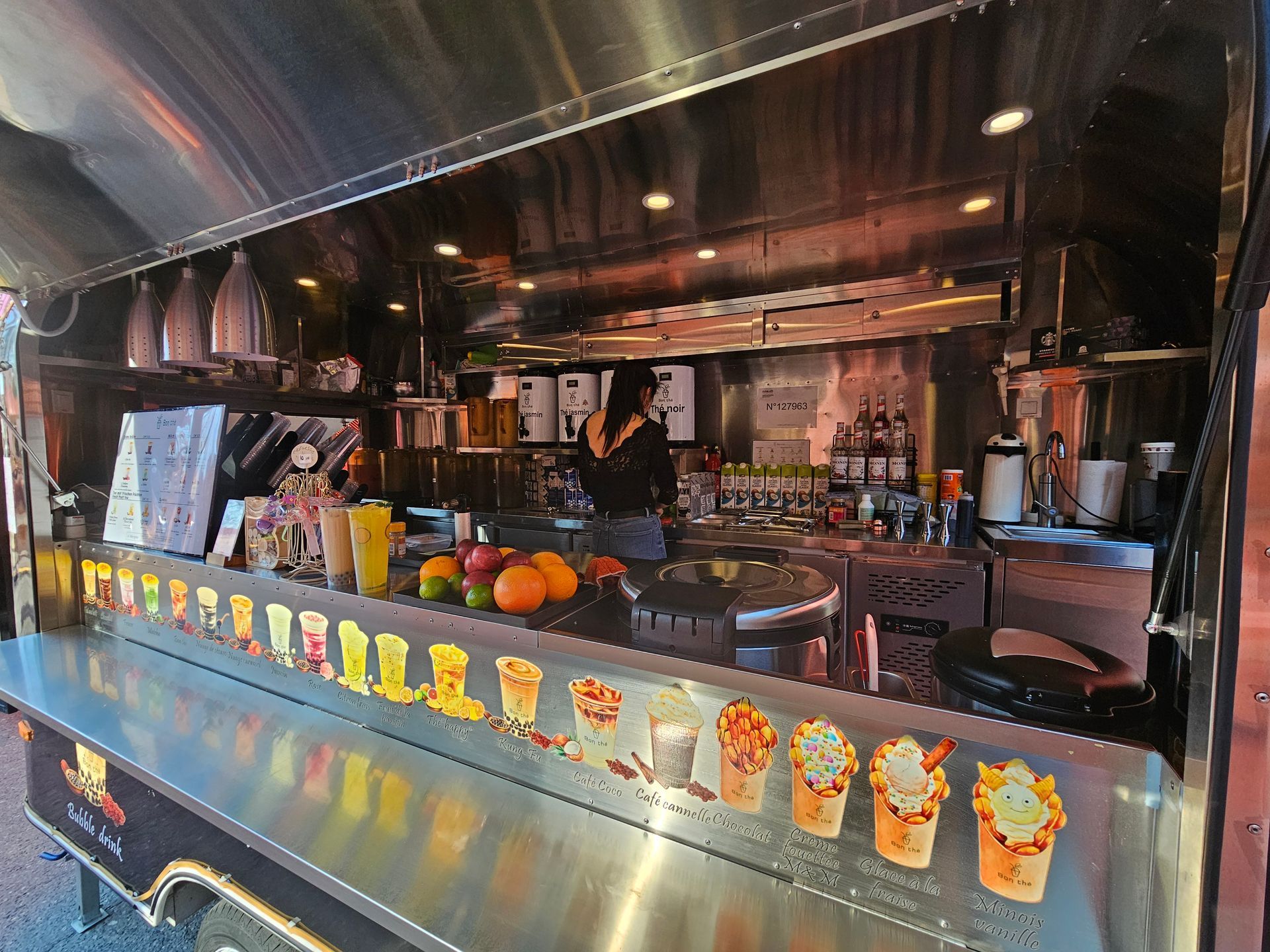 Qu'il s'agisse d'un anniversaire, d'une fête de famille ou entre amis, mais aussi pour vos séminaires et réunions d'entreprise, nous vous proposons les services de notre food truck. Dégustez ou faites déguster à vos invités des préparations à base d'ingrédients frais et de grande qualité (sirops Monin, café Starbucks Italian Style, thé de Chine, tapioca d'Asie...)